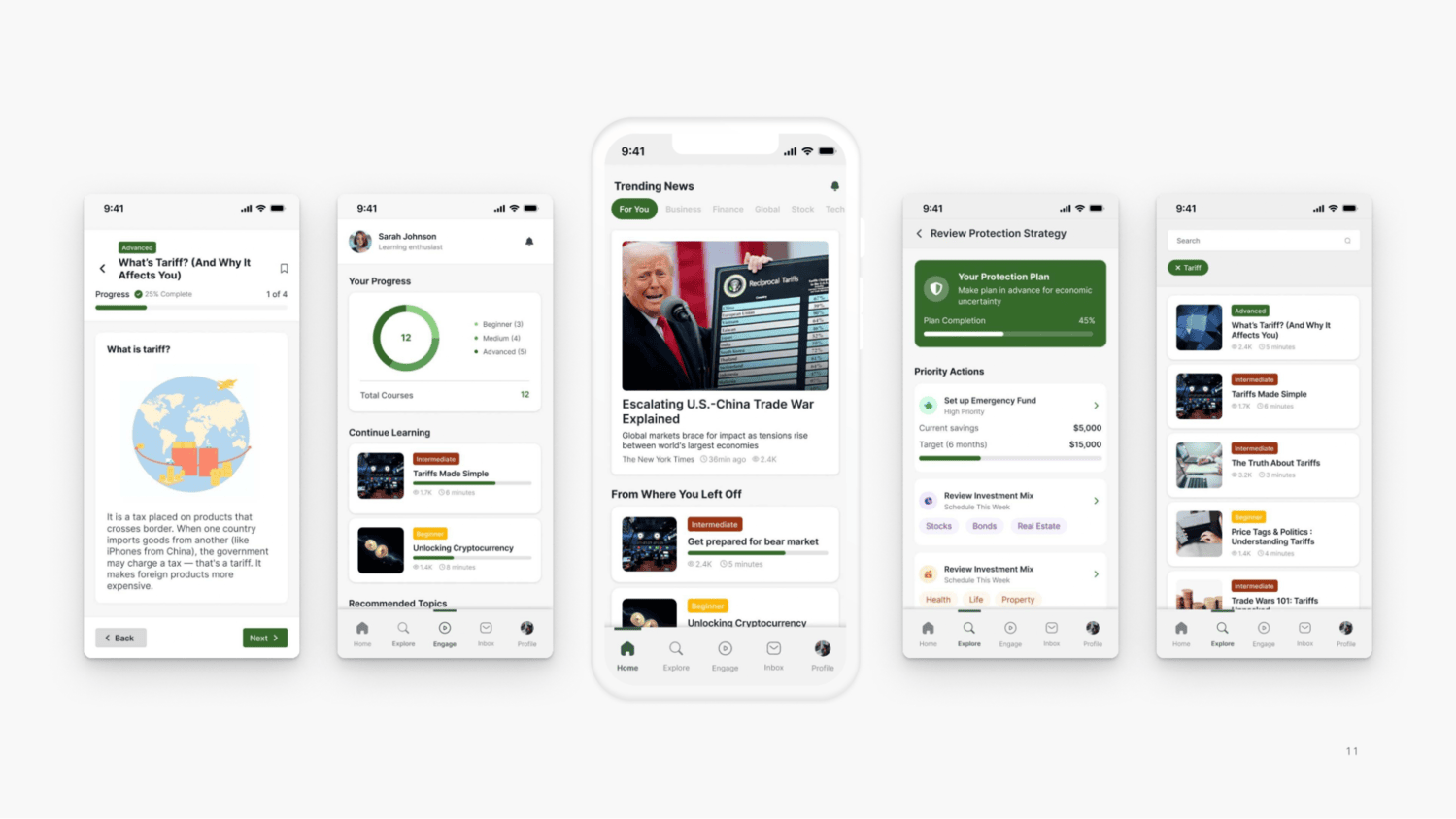 Users build a tailored profile that captures their financial goals and circumstances, ensuring the content they receive is directly relevant.