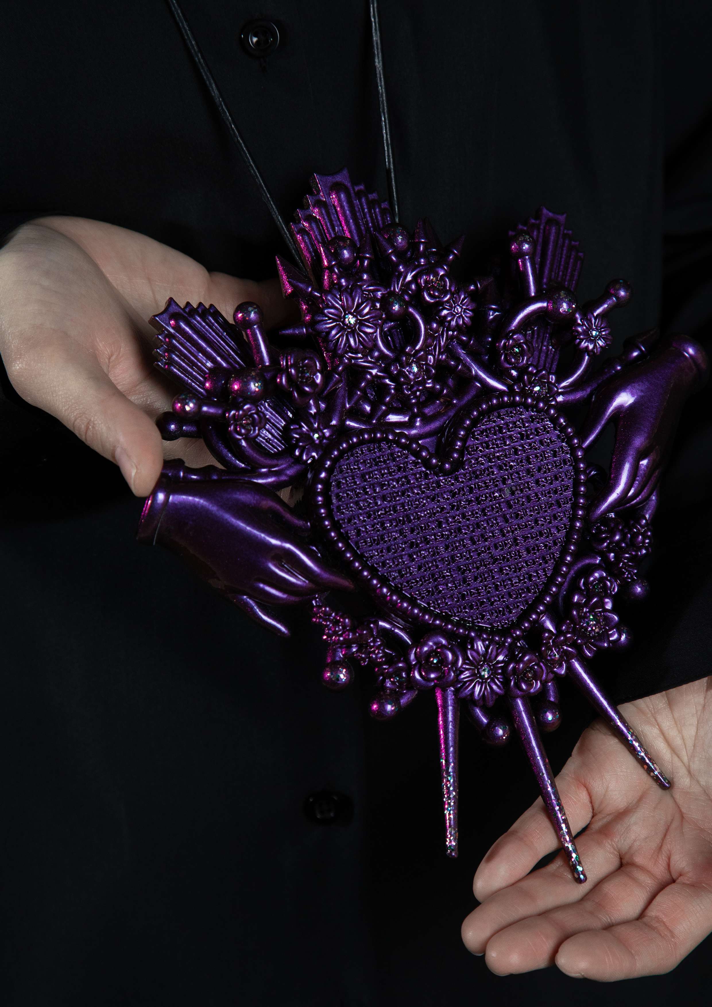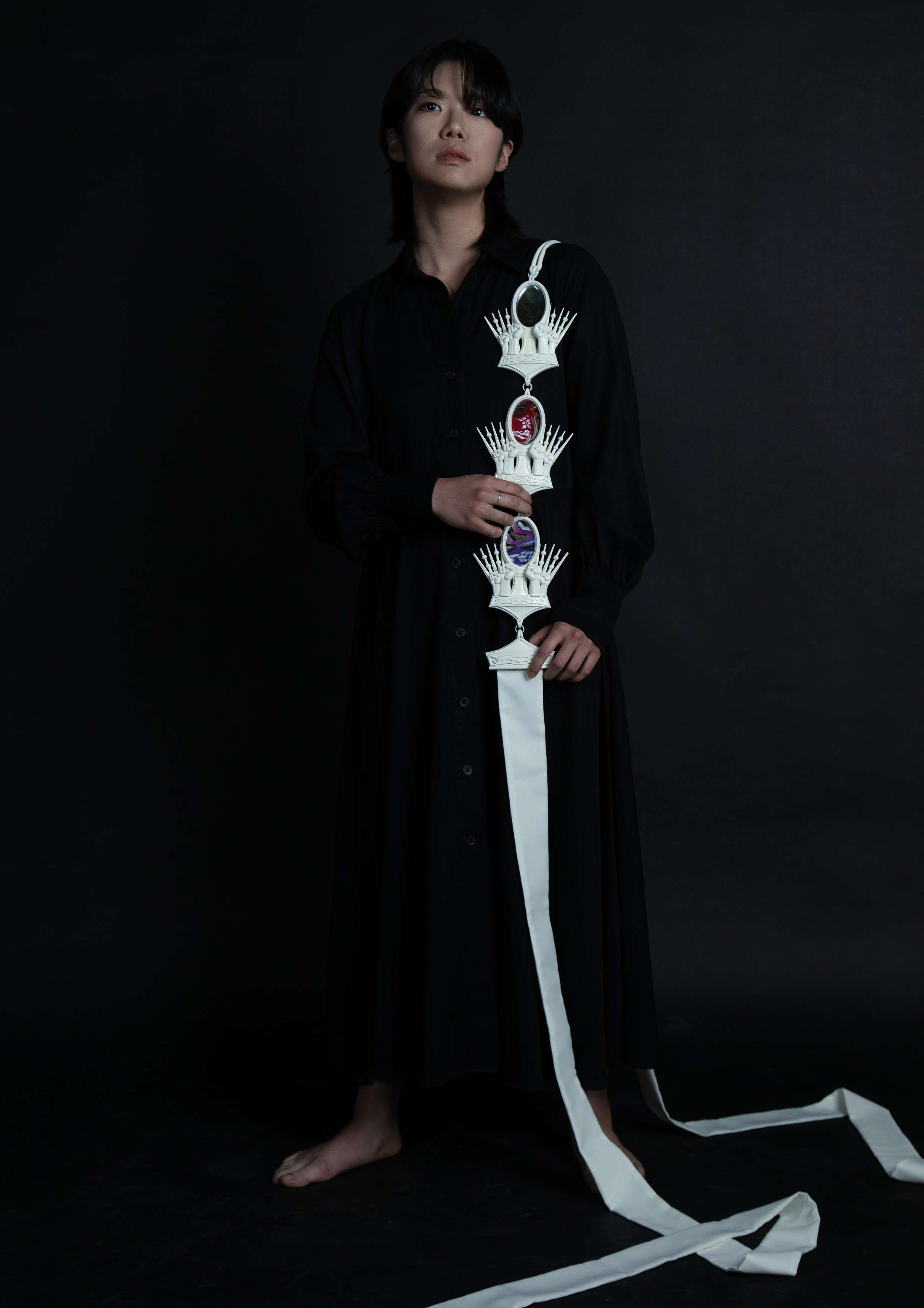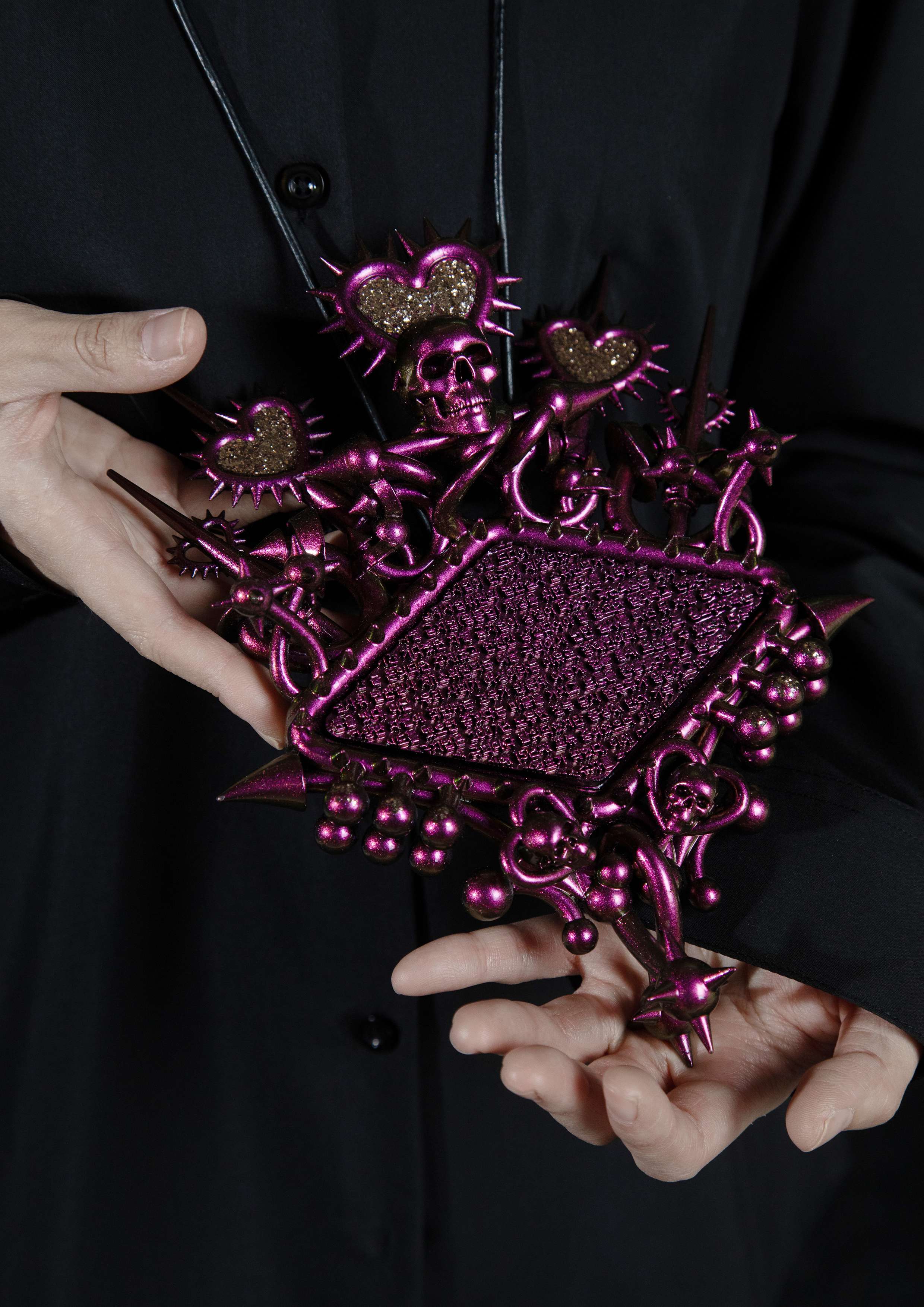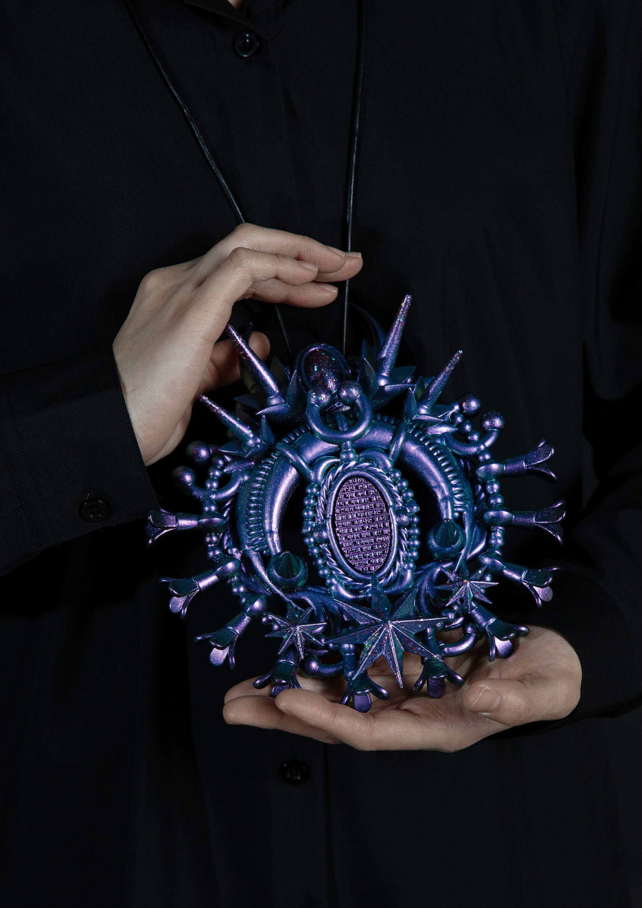 “Beyond Magic: Revolutionary Unboxism” is a future-oriented jewelry project that reimagines how jewelry can function as a cultural and conceptual medium. Rooted in my experience as a queer Korean woman navigating conformity, the project transforms personal resistance into a forward-looking exploration of what jewelry can signify in future societies. Jewelry has historically embodied identity, belief, and collective memory. This project inherits that lineage while pushing jewelry beyond traditional ornamentation. The pieces are created through a new technique that combines three processes—3D printing, electroforming, and powder coating into one integrated method. Merging these technologies into a single workflow allows the forms to shift fluidly between digital precision, organic metal growth, and futuristic surface textures, presenting a new aesthetic and technical vocabulary for contemporary jewelry. At the core of the project is a fictional Korean NEWS broadcast engraved into the pieces. This imagined narrative reinterprets a real moment of discrimination, transforming it into a story of resistance and empowerment. By blending fiction with reality, the work positions jewelry as a medium capable of rewriting narratives and imagining more liberated futures. The project expands further through video art, creating an immersive environment where jewelry becomes something activated rather than simply displayed or worn. This hybrid presentation encourages viewers to encounter jewelry as a dynamic system of communication that bridges craft, new technology, and speculative storytelling. In its entirety, “Beyond Magic: Revolutionary Unboxism” proposes a future in which jewelry exists as a conceptual and emotional presence—one that carries narrative, memory, and social possibility. It offers a new perspective on what jewelry can be and the futures it can help us envision.