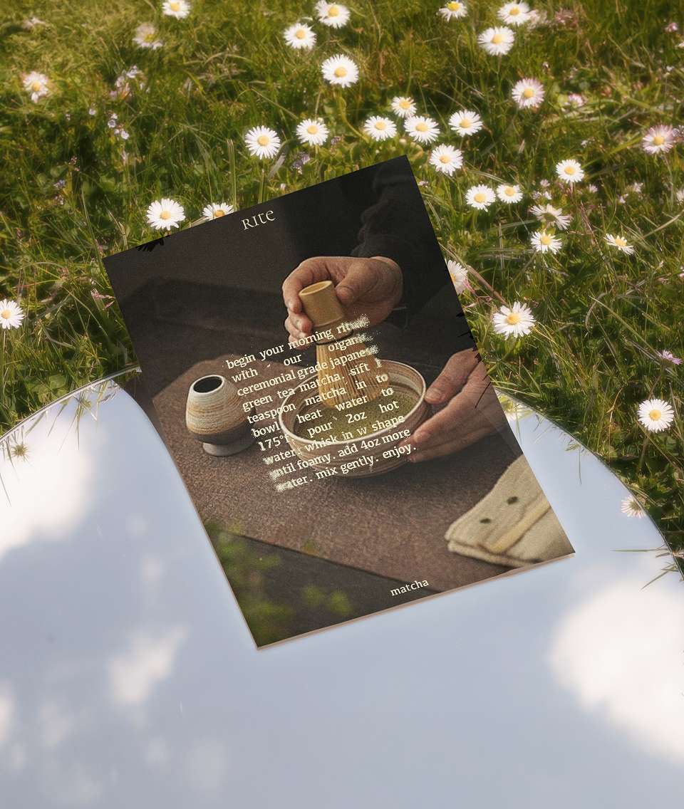 rite is a hand crafted invitation. We aim to reimagine the tea experience for the modern consumer, curating a brand that embodies warmth, authenticity, and mindful moments in this hectic world. rite.bos creates "a loose, cozy, hand-picked, and welcoming afternoon,” countering rigid tea rituals through inviting personalized experiences that don’t sacrifice quality. Each tea tells a unique story, highlighting the origins and producers that guide your sensory journey through every note. rite.bos positions tea as an intentional yet informal pause in daily life, with simple ingredients that blend timeless craft with modern innovation.