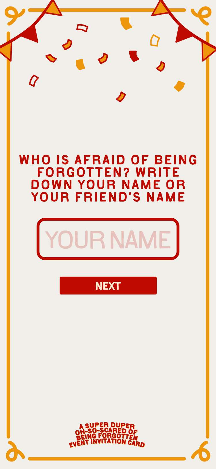 A super duper oh-so-scared of being forgotten event invitation card